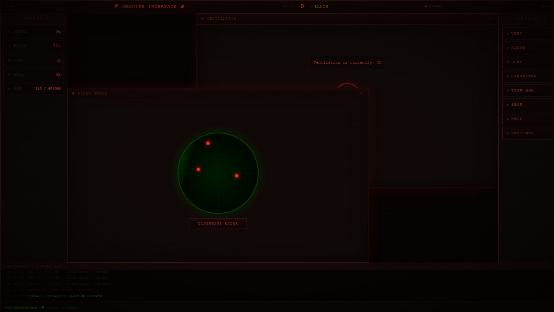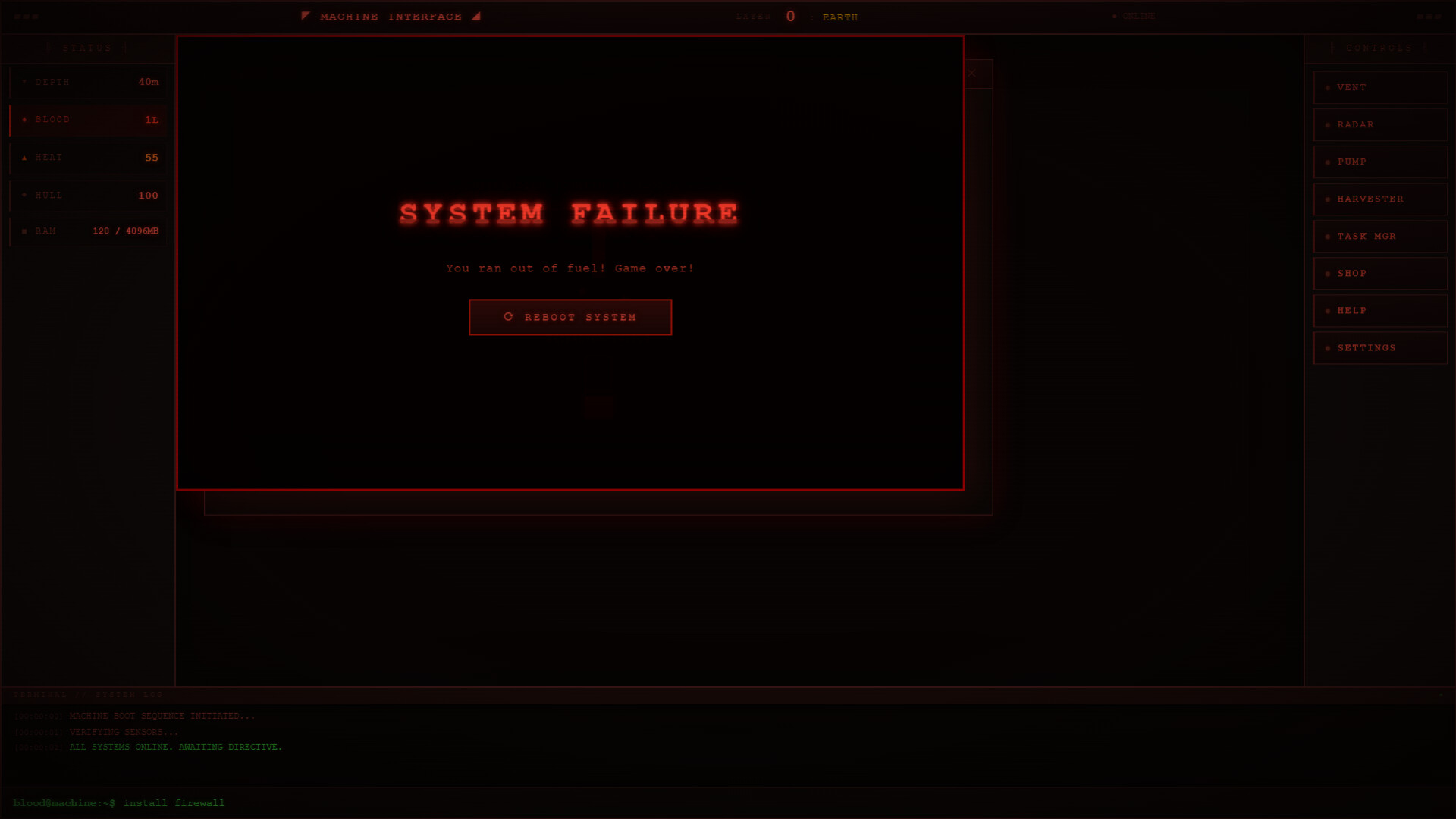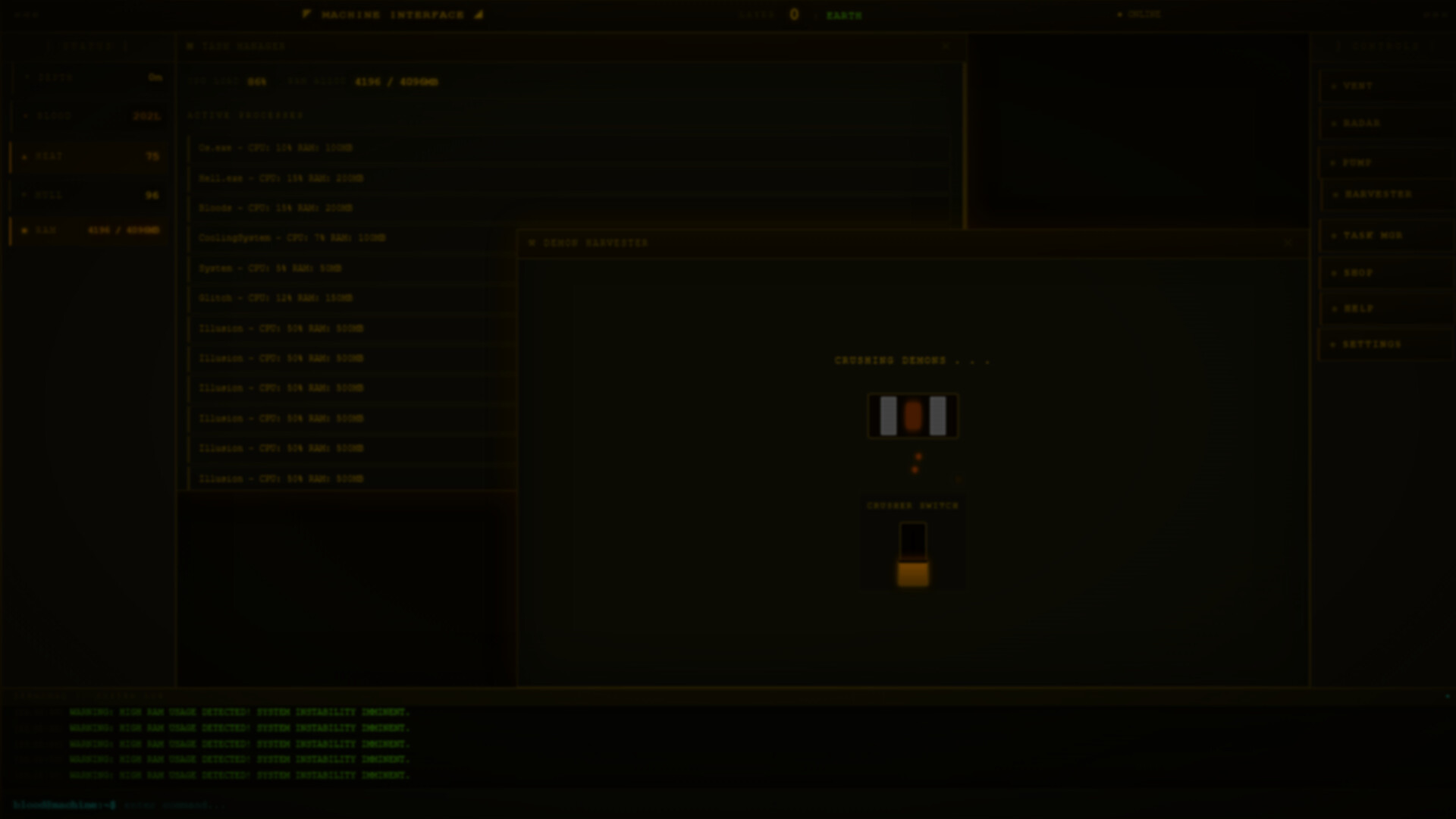 Sanguis OS is a dark, claustrophobic UI-based horror simulation. Take control of a blood-fueled drilling machine descending into the 9 layers of Hell. Manage engine heat, harvest demons for fuel, and fight off corrupting demonic malware before your system crashes and the hull is breached.
