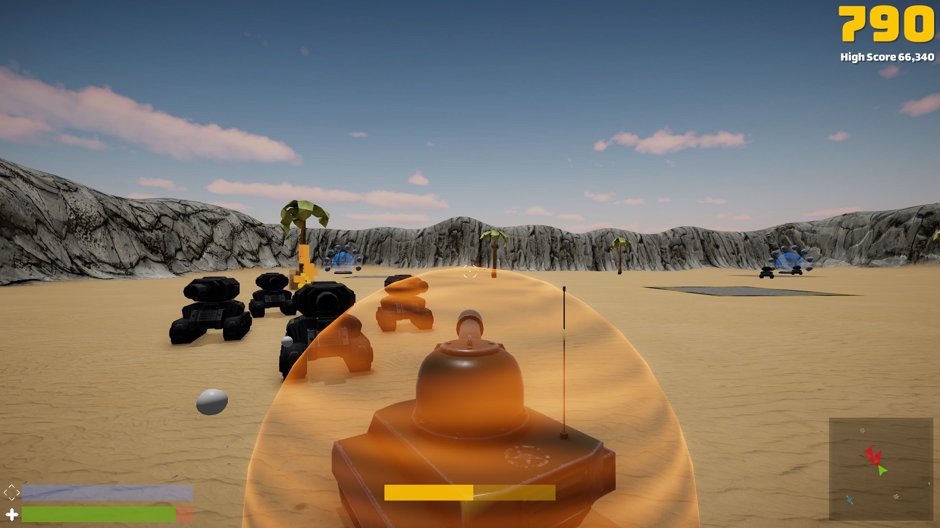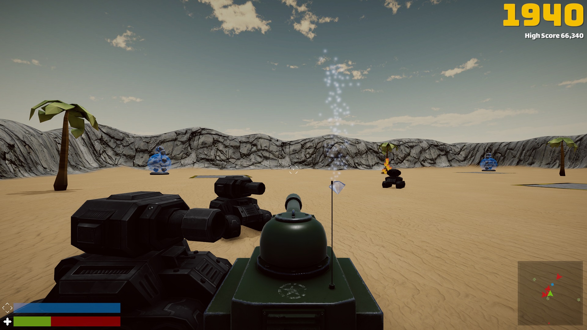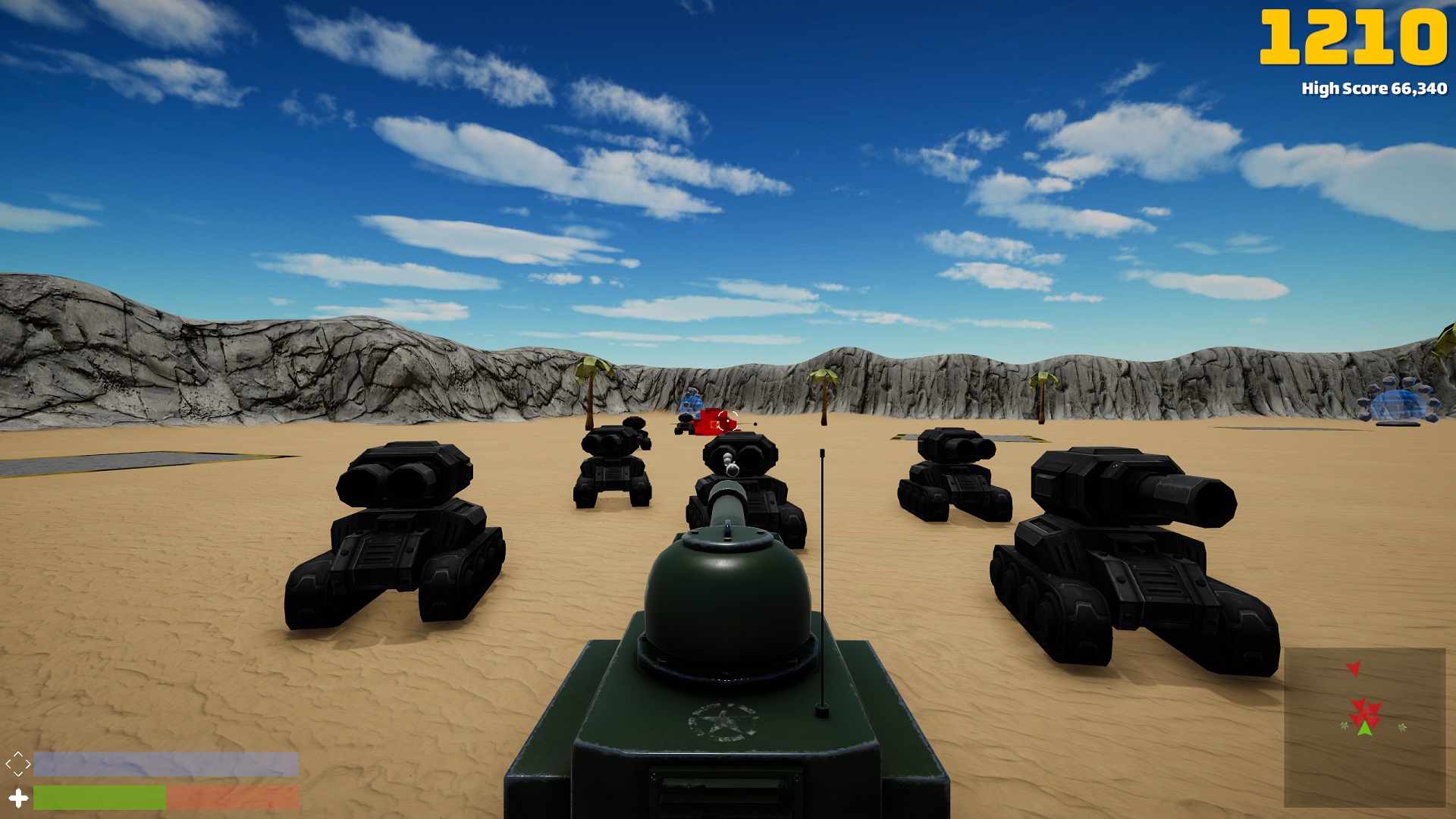 Featuring pickup items such as Health Packs and "Insta-Bombs" (dropped at random when an enemy tank is destroyed) to help (or sometime hinder!) you in your mission. Additionally featuring an energetic rock backing track and an old-school look, Tank Warz! will engross you in hours of arcade fun - can you beat your high-score?