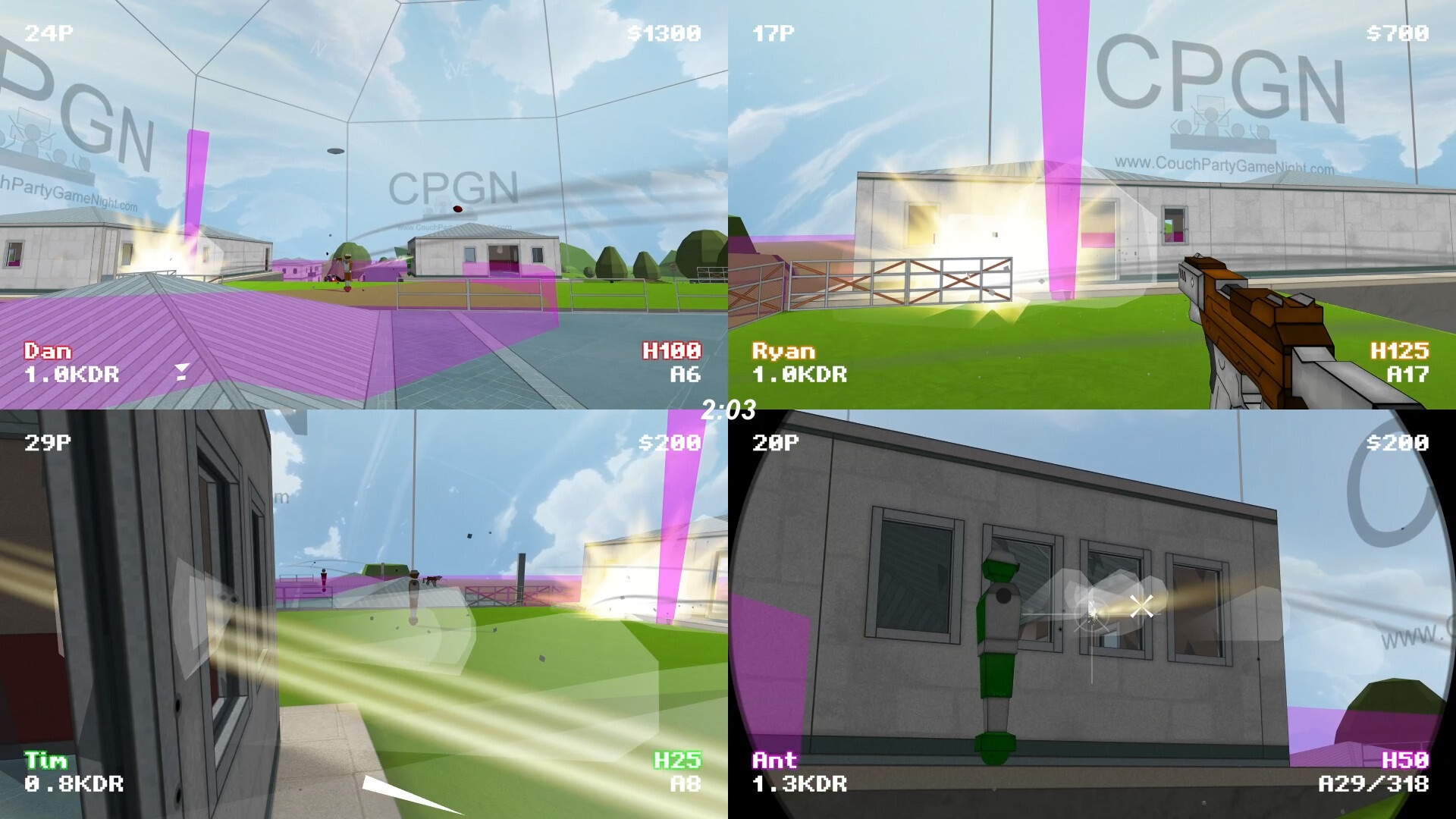 • No lag or cheaters (all players on 1 machine plus no hitscan tech or its flaws)