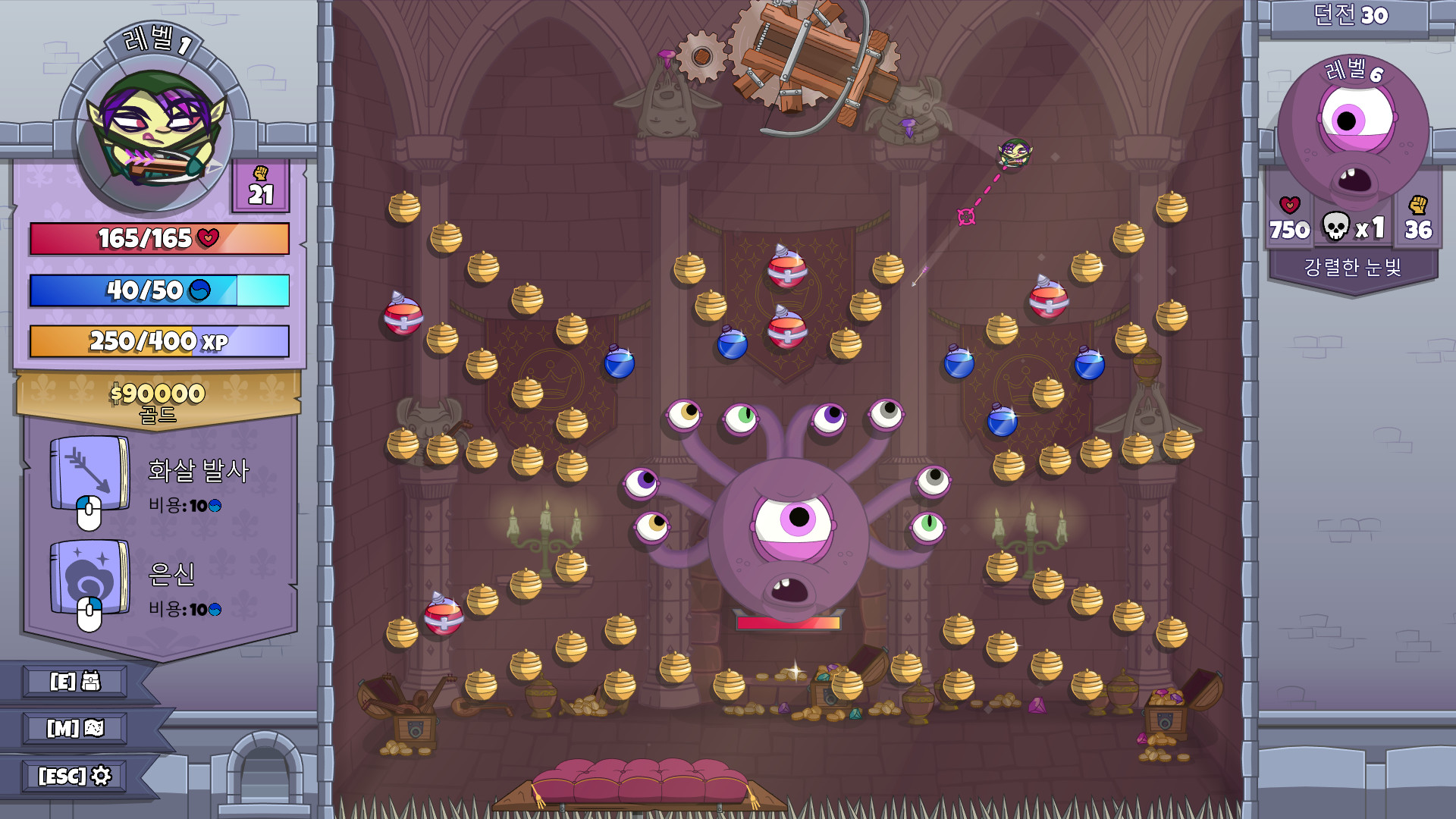 - 통통 튀는 즐거움: 직관적인 핀볼 느낌의 게임플레이로 다른 던전 탐험형 게임과는 다른 즐거움을 선사합니다.