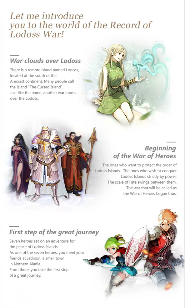 By becoming an adventurer in the world of Lodoss Islands, players can experience authentic storyline co-directed Mizno Ryo, the author of the original book “Record of Lodoss War”, while also immersing into a completely new story that would capture your interest instantly.