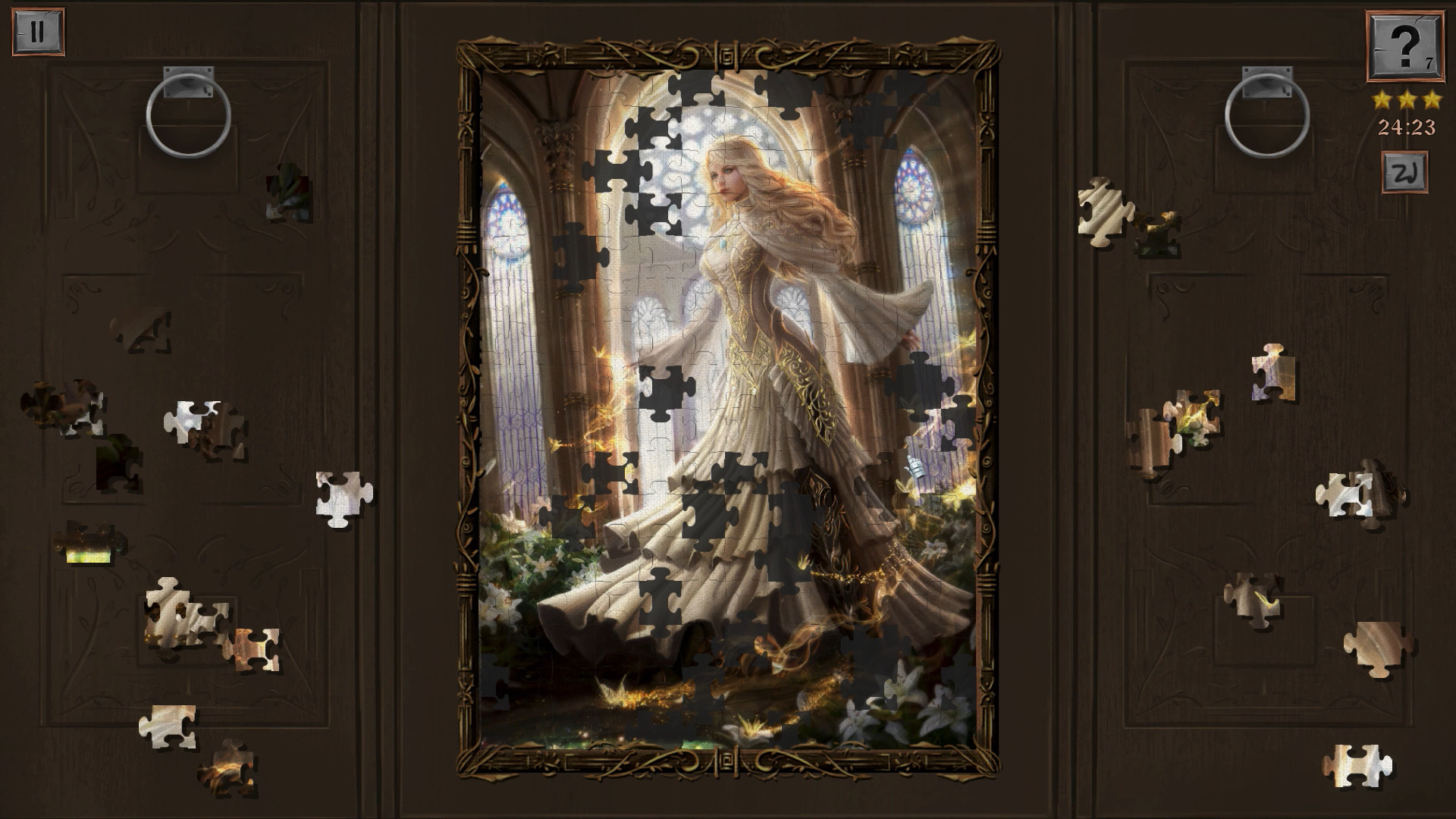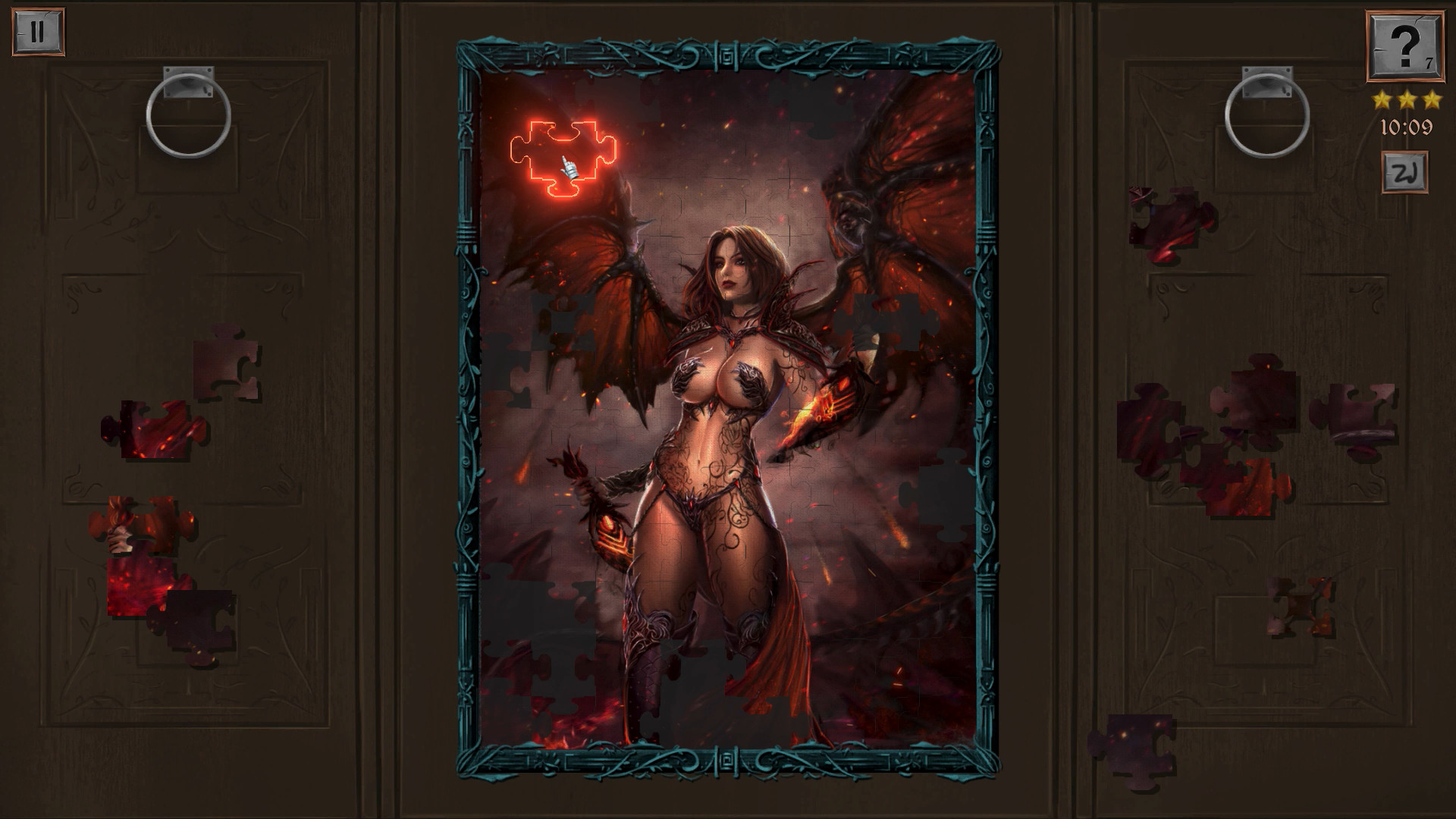 간단히 시간때우기 좋은 직소 퍼즐입니다. 처자들 일러가 상당히 이쁩니다. BGM도 다크환타지와 상당히 어울립니다. 피스가 제일 많은 퍼즐을 완료하면 하위퍼즐 도과는 자동으로 완료됩니다. 할인때 사시면 가성비가 아주 훌륭한 게임입니다. 할거 없을때 아무생각없이 하기 좋고, 하면서 눈과 귀가 즐거운 게임 되겠습니다.