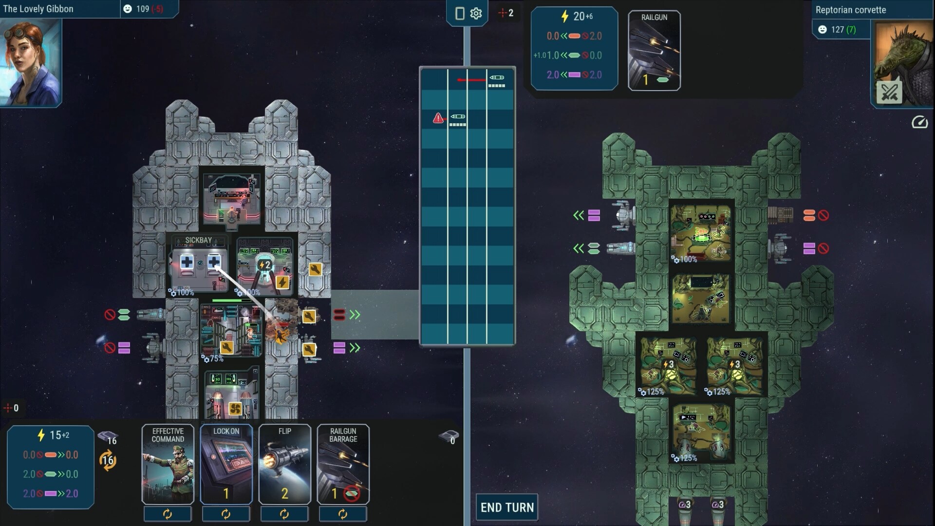Unlike most deckbuilders where you have a global deck of cards, in Hunt of the Reptorians each crewmember contributes cards to the overall deck. As they gain experience, they will get more cards. Or you will be able to upgrade or remove their existing cards. You’ll have to make sure you protect and nurture them with training etc. It won’t be a good day when your highly experienced pilot is sucked out into space!