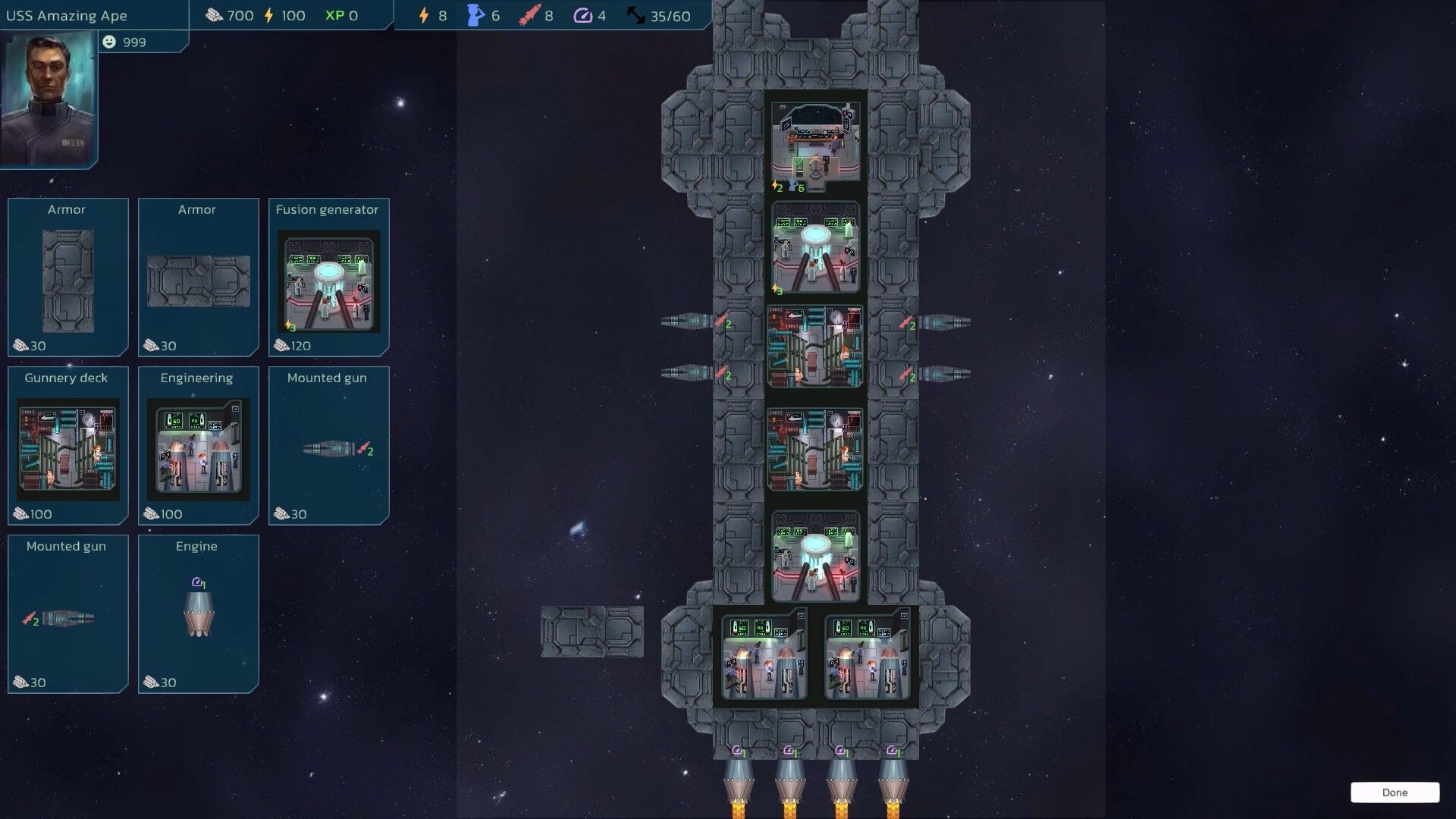 As part of the game progression, you will use your resources to expand, upgrade and customize your ship. Decide whether your ship will be bristling with guns, fast and nippy or slow and tough.