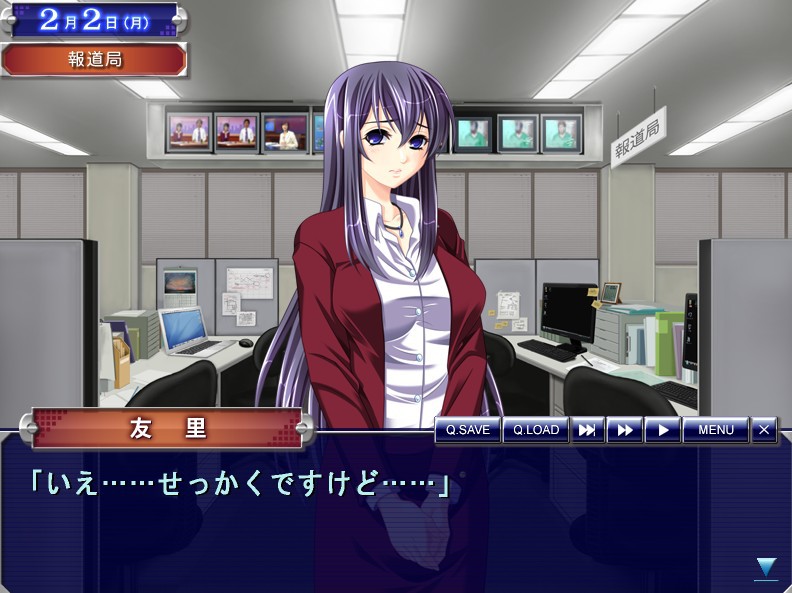 The main character is a TV producer. He joined a TV company because he really liked female newscasters. He is now in charge of a news program. The program is very popular, especially among men, because he uses a lot of beautiful newscasters. However, he always takes advantage of his position and gets secrets of the newscasters.... Like this, he sleeps with various newscasters. One day, two newscasters take charge of his news program and work hard to comply with his requests. Once he has sex with them, his requests gradually get bolder....