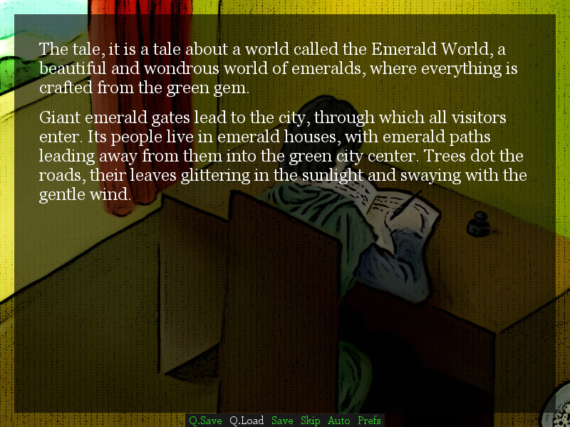 Once, a child was lost while seeking the Emerald World. It is a world of Emerald, where everything is beautiful and wondrous. Once, a writer wrote about the child's trip. It was a strange story, changing along with the child's trip. Once, that was a long time ago, when a child was lost in the Emer...