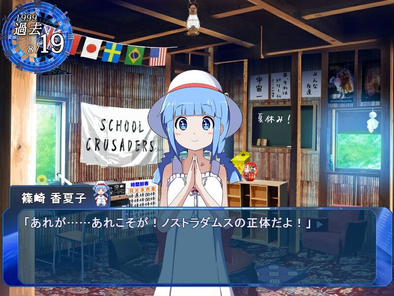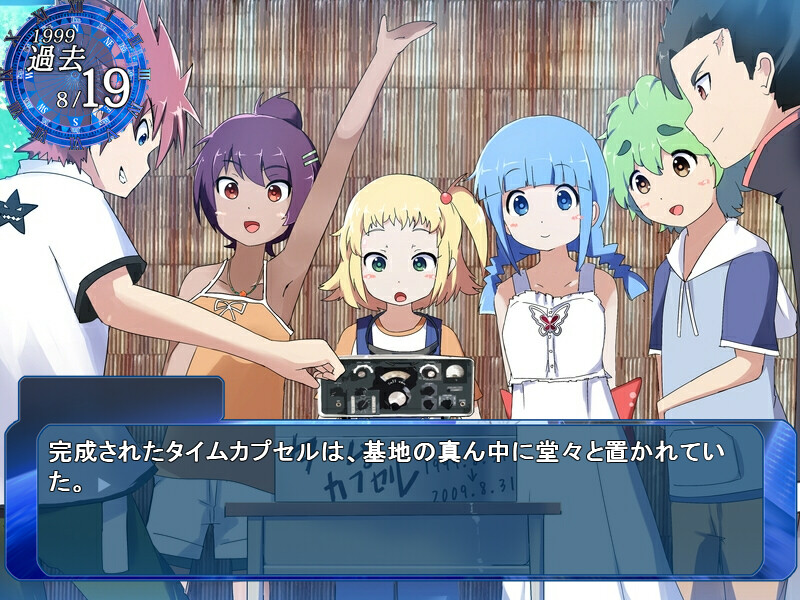 This is a tale of universe, time, and bonds. The orbital satellite triggered the end of the world. Under the rainbow, school crusaders will change the world beyond chrono rule. The past and the present cross and make the only one future. I won't forget our summer and dreams. ...and believe we will ...