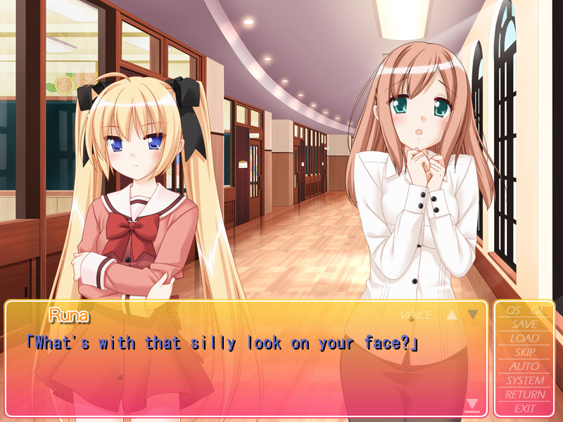 This game introduces a new couple: Suminoe Takako, a young and still inexpert teacher at the elementary department of St. Michael's School for Girls, and one of her students, the daring ojousama Houraisen Runa.