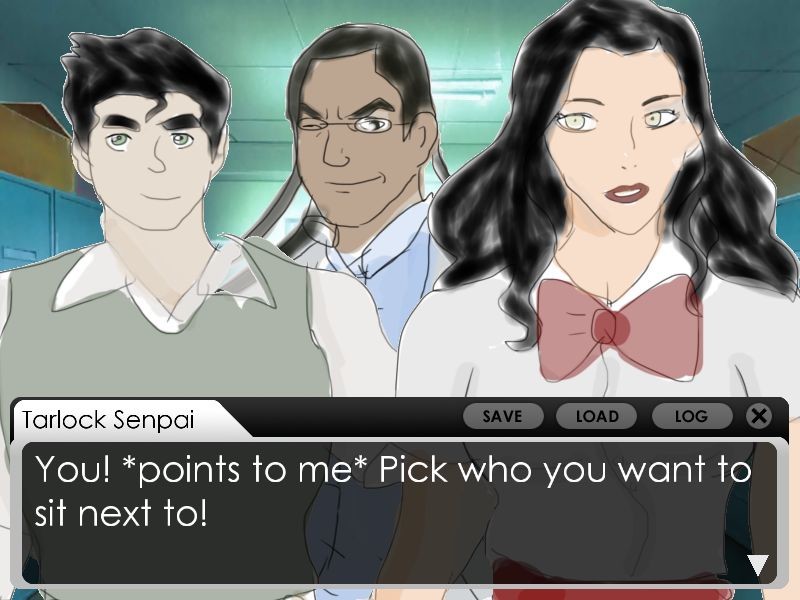 Tarlock -senpai is your homeroom teacher. Choose who to sit next to, Bolin, Tarlock, or Asami. You have the option of meeting with them after class, or ignoring them all!