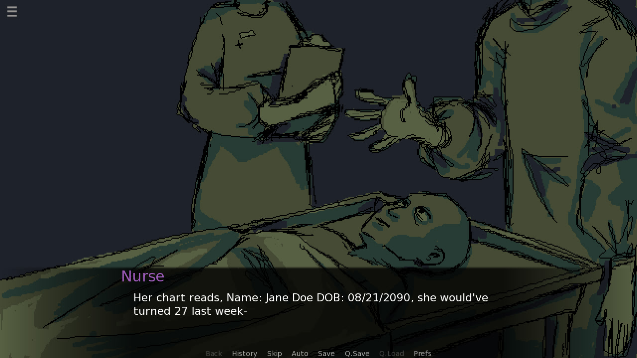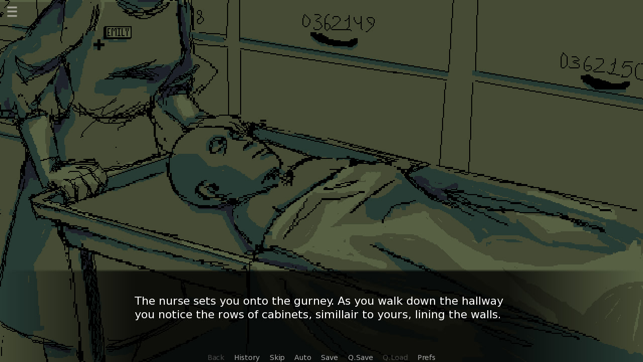 You play as a woman who wakes up unable to move in a morgue. Itch.io]