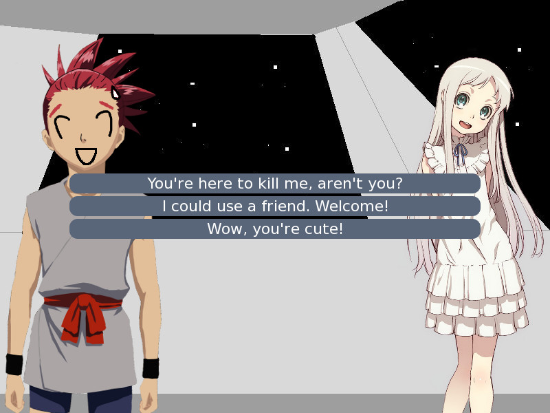 A sci-fi comedy parody of what most people think of when they think of visual novels. Features: * Multiple endings! * Real-time emotions! * Not really! * SPACE!!!! * Possibility of robot love! official site]