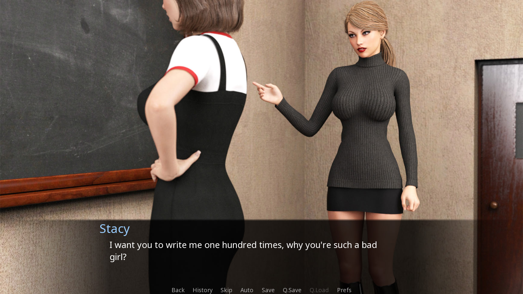 Adult Education is a steamy visual novel set in an adult evening school, where a sultry teacher develops an intimate interest in her female students.