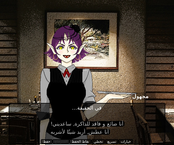 An Arabic short visual novel. You are lost, you don't remember who you are, but you find yourself at a cafe in the middle of a forest... Can the waitress help you remember?