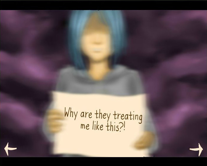 "Purple" is originally based on Amanda Todd's video where she is seen flipping through written cards describing her story. Unfortunately, she is no longer with us due to the depression she experienced from bullying.