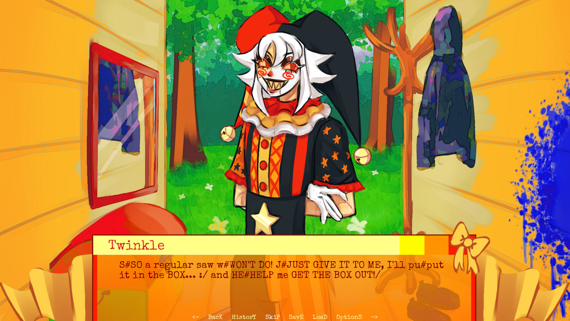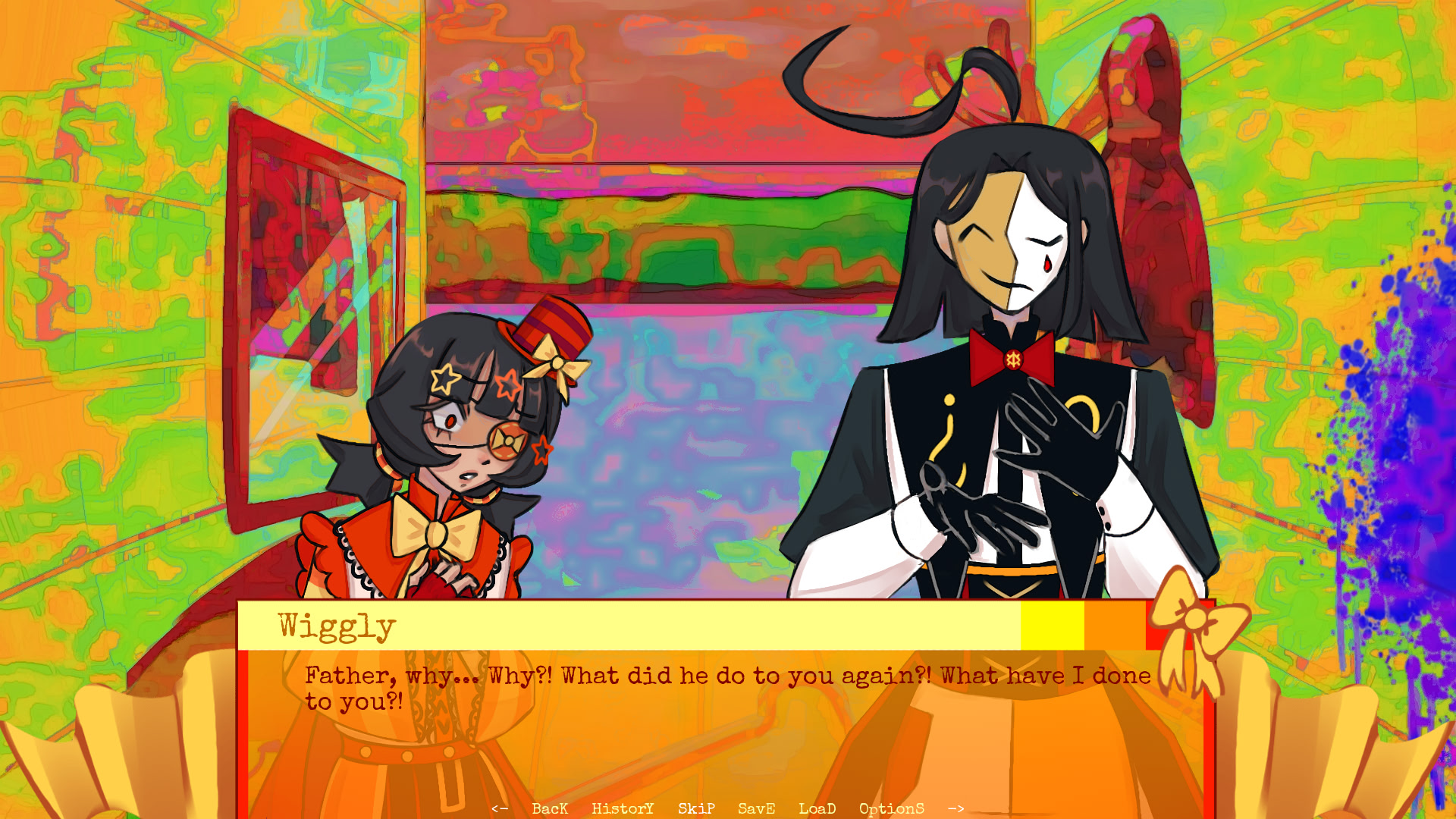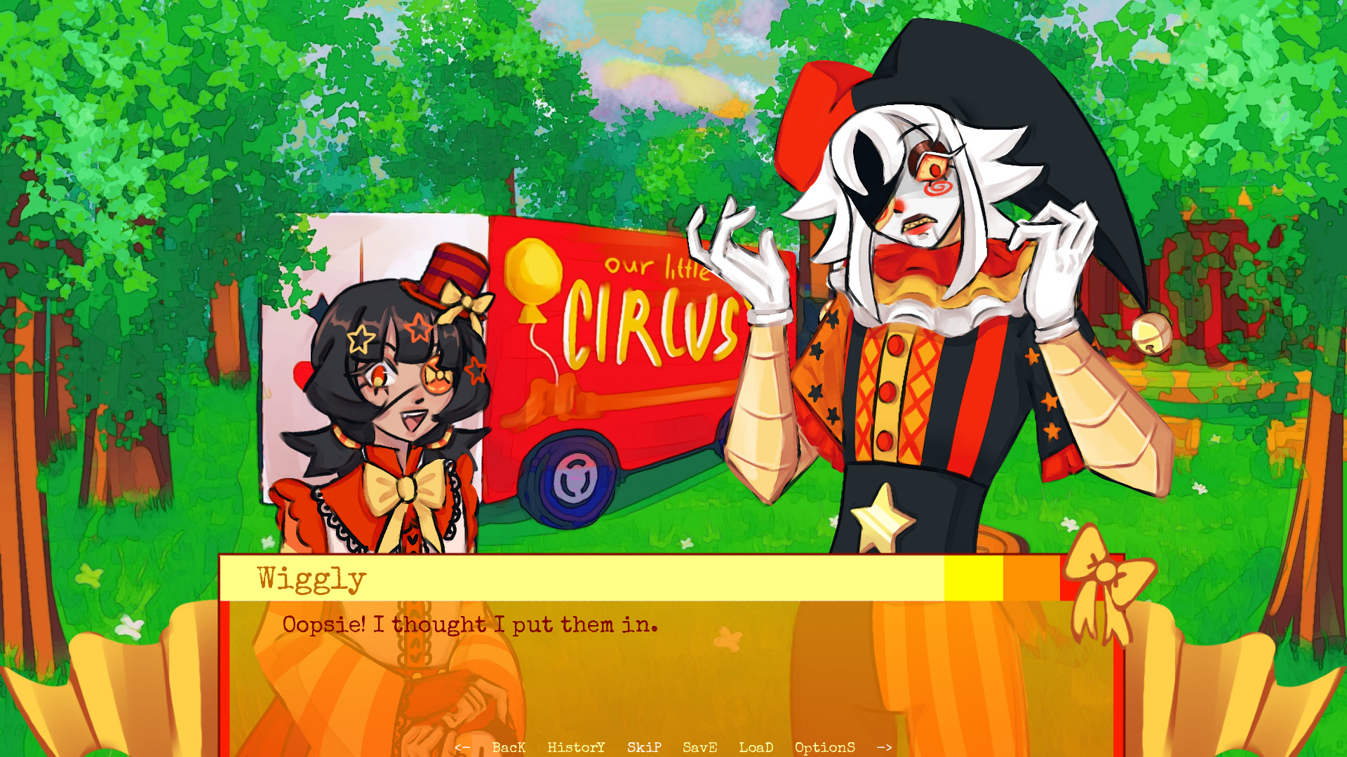 Magician Wiggly and jester-bot Twinkle run a curious show. Step into the lives of three onlookers and learn what lies beneath the act. Itch.io]