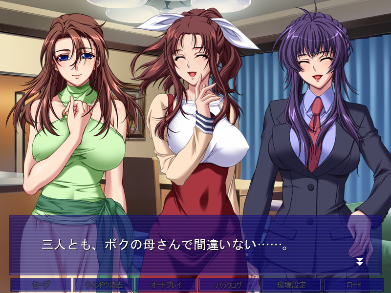 Scenario 1 and 3 are, respectively, a cousin romance Love Story and a mind control Dark Story from Saiminjutsu 2, Scenario 2 is an Oedipus Complex mind control extravaganza (DON'T ASK!) with characters from three different Black Rainbow games.