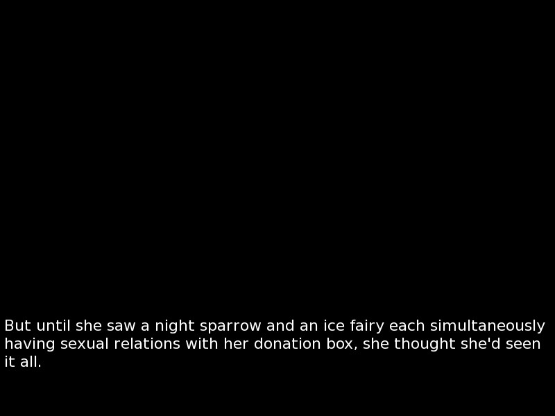 A Touhou fan VN. It's basically a story about a childish ice fairy who discovers a new use for tables and the silliness that ensues. Lemma Soft forums]