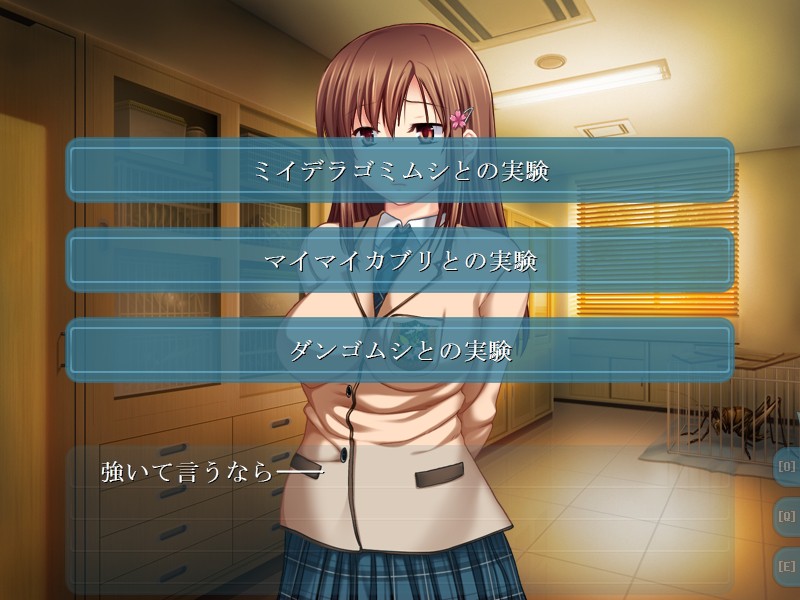 The story takes place in the halls of Kisaragi Academy. Kunugi Hisataka, a newly appointed biology teacher, conducts research on insect ecology. Through his own methods of breeding and genetic manipulation, he has succeeded in creating giant specimens. However, his secret experiments are discovered ...