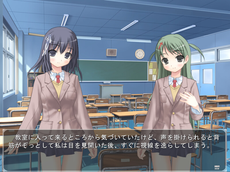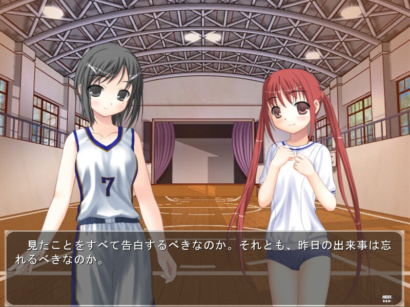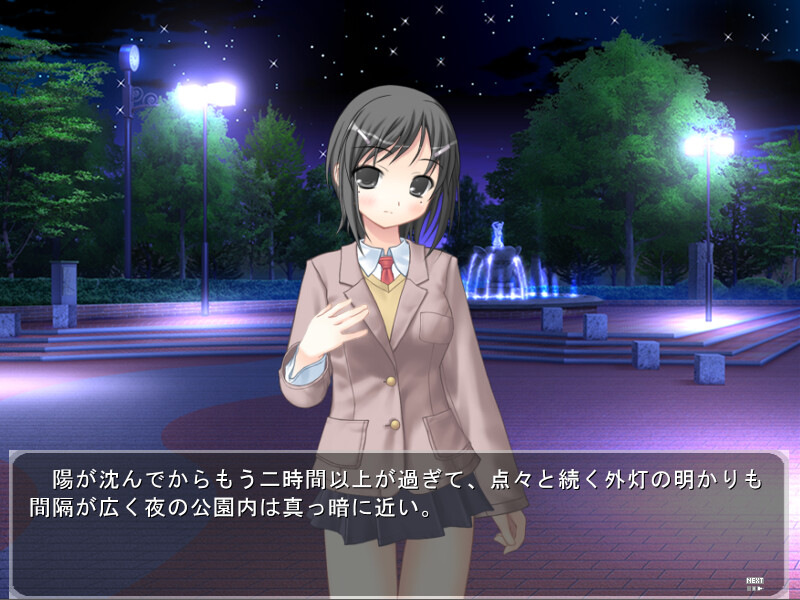 Natsumi went past the park one evening on her way home from club activities and saw her friends Haruka and Hinano stripping for an audience. She panicked and ran away, but couldn't stop thinking about what she saw. During club activities the next day she was downright wet with excitement... but she'...