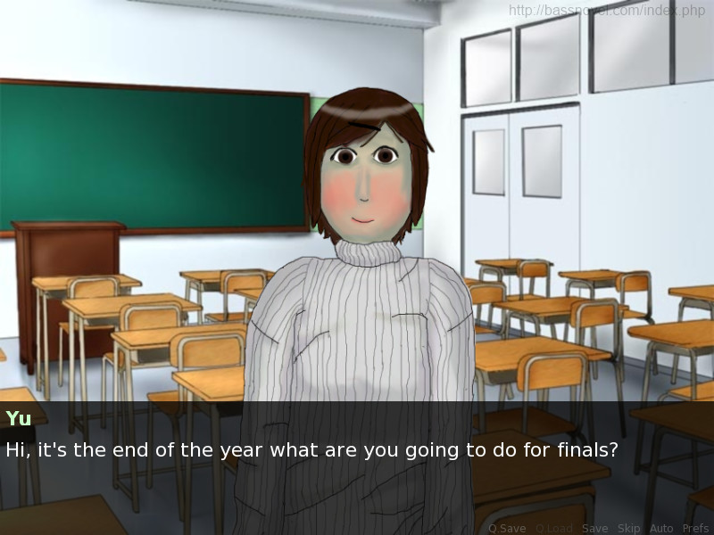 It's finals again, but your seat neighbor who's the only girl who ever have spoken to you is skipping to college. As soon as class is over she comes ask you what you will do for finals. This may be the last change you have to speak to a girl again.