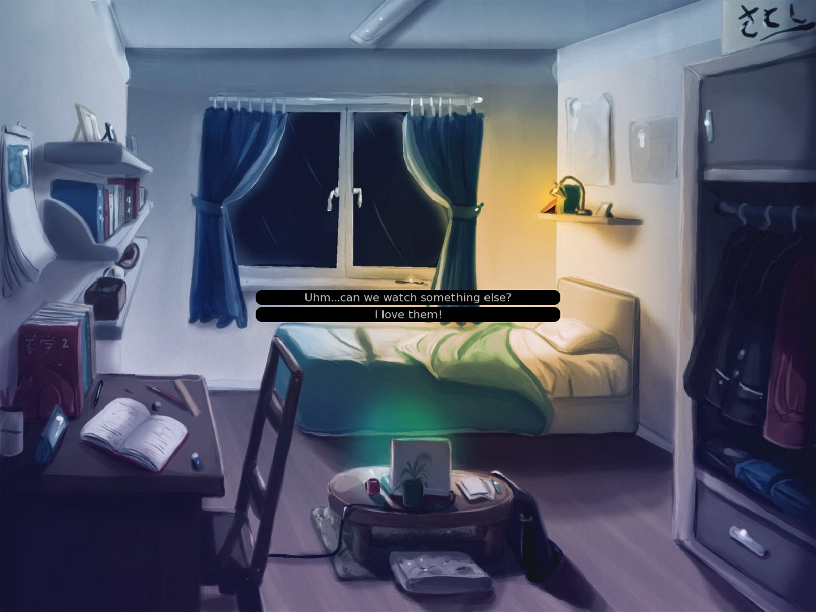Another short visual novel about Haru. This time you team up with him to work on a school project. However, in this night something strange happens. Suddenly you're locked inside your own room and a dark power threatens your life! Can you find a way out of your room? Can you even survive this night? Pay attention to your environment and you might have a chance to escape.