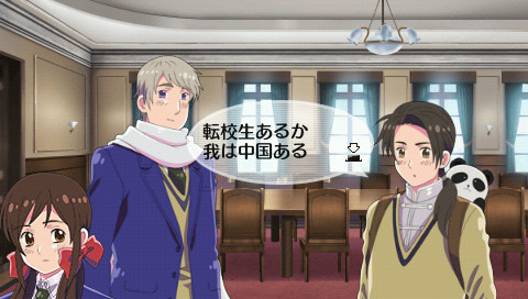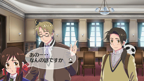 Join your favorite personifications of international powers in their madcap adventures in the Hetalia universe - but now you control their fates! Our heroes have gathered in the prestigious "Sekai W Gakuen" (World W Academy -- wonder what that "W" could stand for...).