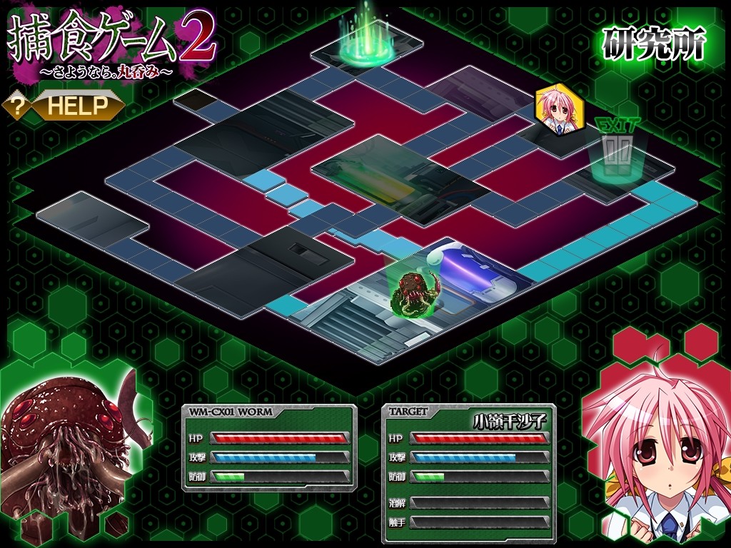 A giant worm has escaped the science labs for a girl-swallowing rampage! With each heroine it eats, it evolves its form. You are the worm! Your goal: find and swallow the researcher who experimented on you! DLsite English]