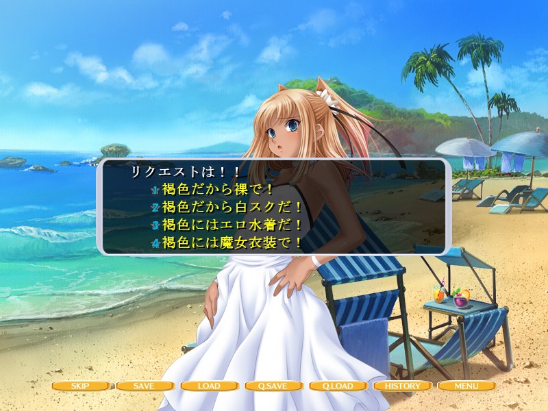 The official story after Lily route! The main character reaches at a tropical island. Now, alone with the girl with a tanned skin on the beach, there's only one thing to do! Choose a suitable cosplay for her and have fun with her!