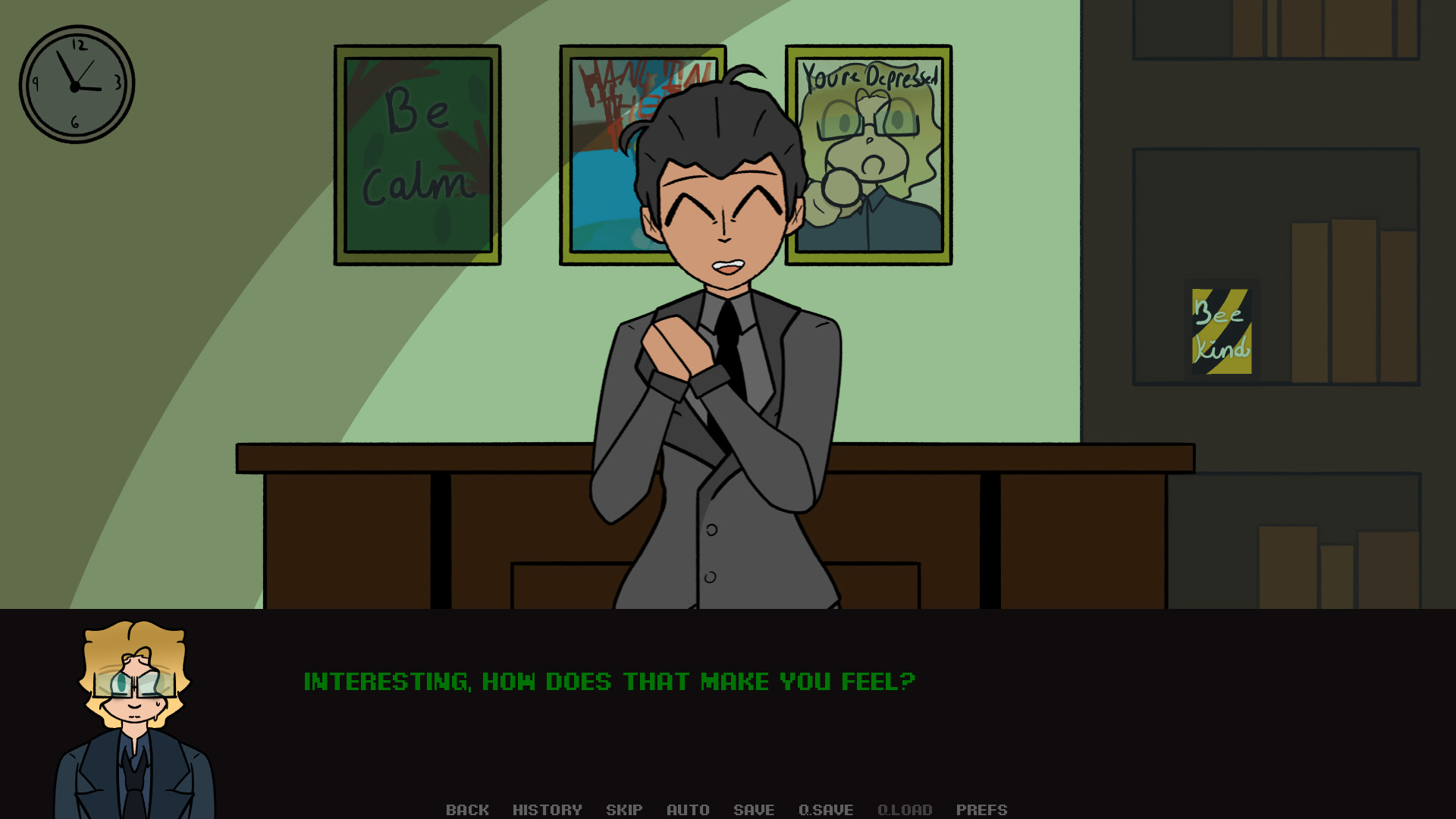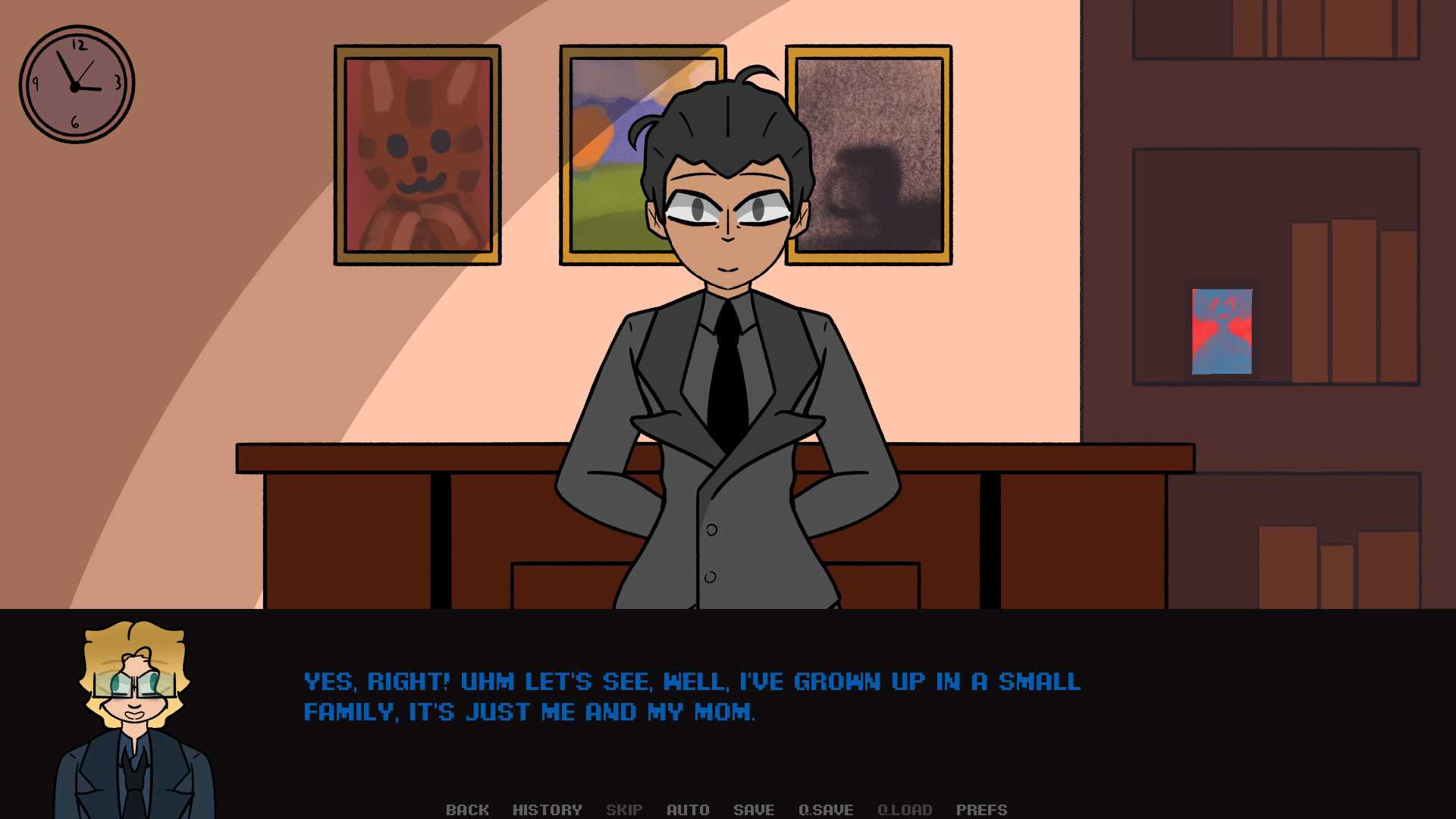 Alex desperately needs a job. Luckily for him, his mother found a nice place for him, but he still has to be interviewed! The interviewer is strange and has a few... quirks. Will Alex land the job or will he be sent back out to his abusive mother? Choose carefully and hope for the best. Itch.io]