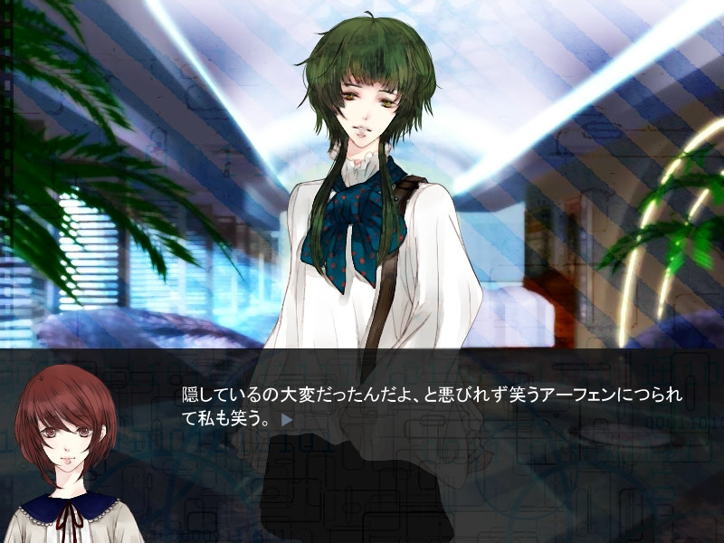 Year 30XX AD. Humans colonize space and genetically create many new life forms. Towns with forests and clean air are covered with domes due to heavy environment pollution. Main heroine is a student who is going to home town for summer vacations. But school main computer breaks down, and as a result ...