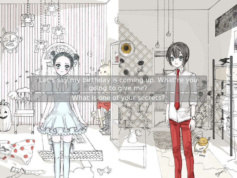 Somehow you've ended up in an alternate universe where Santa is an actual postal worker and where bad tofu gets put in jail. It seems you've arrived just in time to take part in a dating game show hosted by a two inch tall cream puff. You're the main contestant, and your potential dates appear to be human, but they're a little weird. It's your chance to question, court, and maybe even insult your way to true love and find out who is your best match!