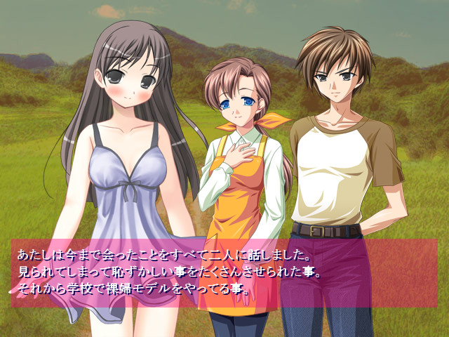 An honors student named Yuma discovered the world of exhibitionism. Unable to forget the sensuality of being naked in public, she continues to do so, everywhere. Now, Yuma takes it further... and crosses the line. A new school year has come, and a junior has joined. Her best friend has a request t...