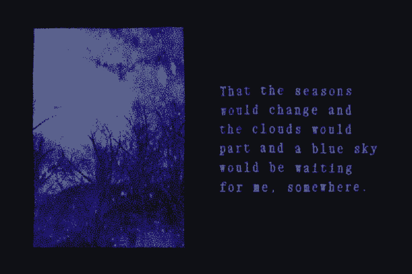 The seasons no longer follow their rhythm – winters bite harder now. A man and a woman walk the remnants of a fading land. There’s little left to hold onto... Itch.io]