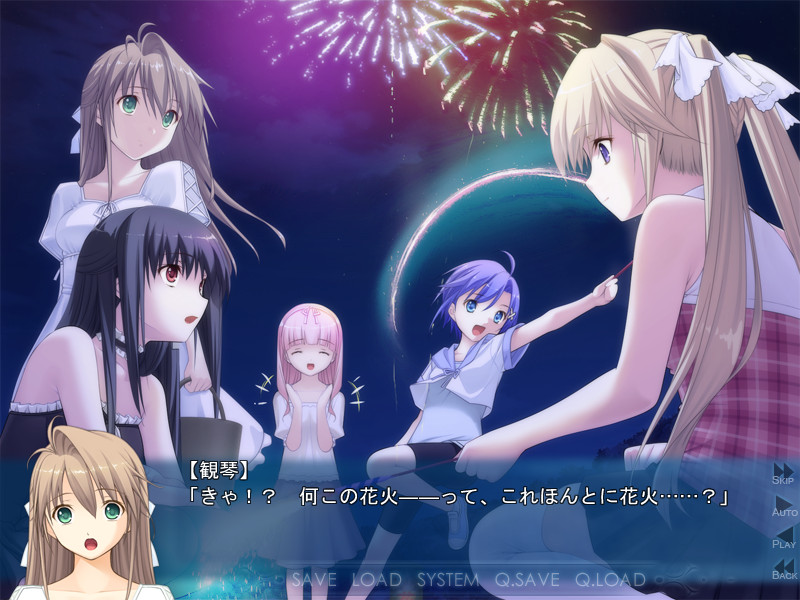 Time passed and he had gotten used to living in the town. In the beginning of summer, a girl named Mikoto transferred into his 2nd-year class. All the guys were excited at having such a pretty girl join their class, but Kazuya was the most surprised… because she was the girl that he had met at the firefly pond.