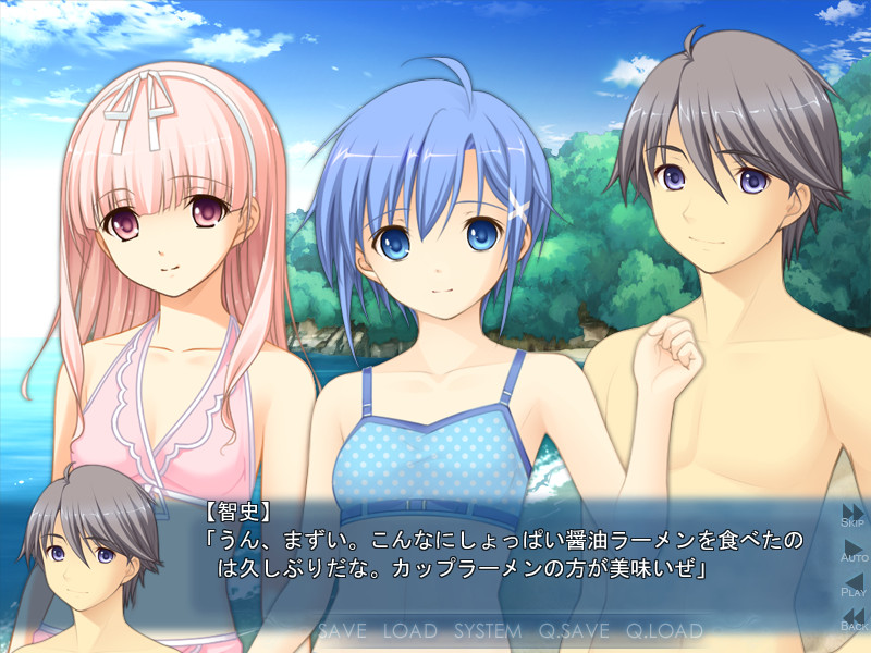 Kazuya’s parents passed away due to illness when he was small and he and his imouto Minatsu were taken in by his father’s acquaintance and they now live in the rural town of Sadogashima. His heart aches when he is lonely and he often goes to a pond in the forest to cry, while clutching a momento fro...