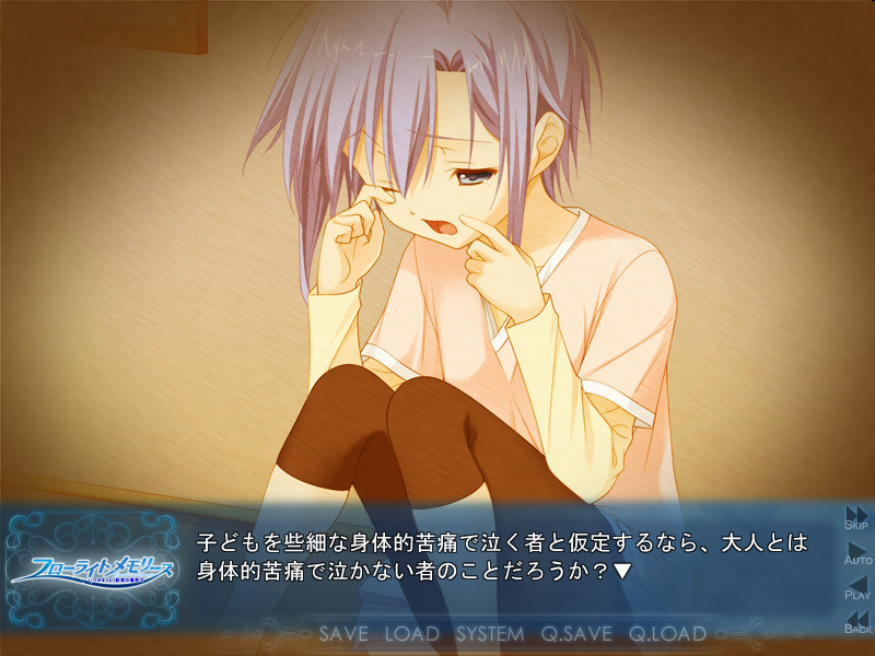 Kazuya’s parents passed away due to illness when he was small and he and his imouto Minatsu were taken in by his father’s acquaintance and they now live in the rural town of Sadogashima. His heart aches when he is lonely and he often goes to a pond in the forest to cry, while clutching a momento from his mother, “tears of a firefly”.