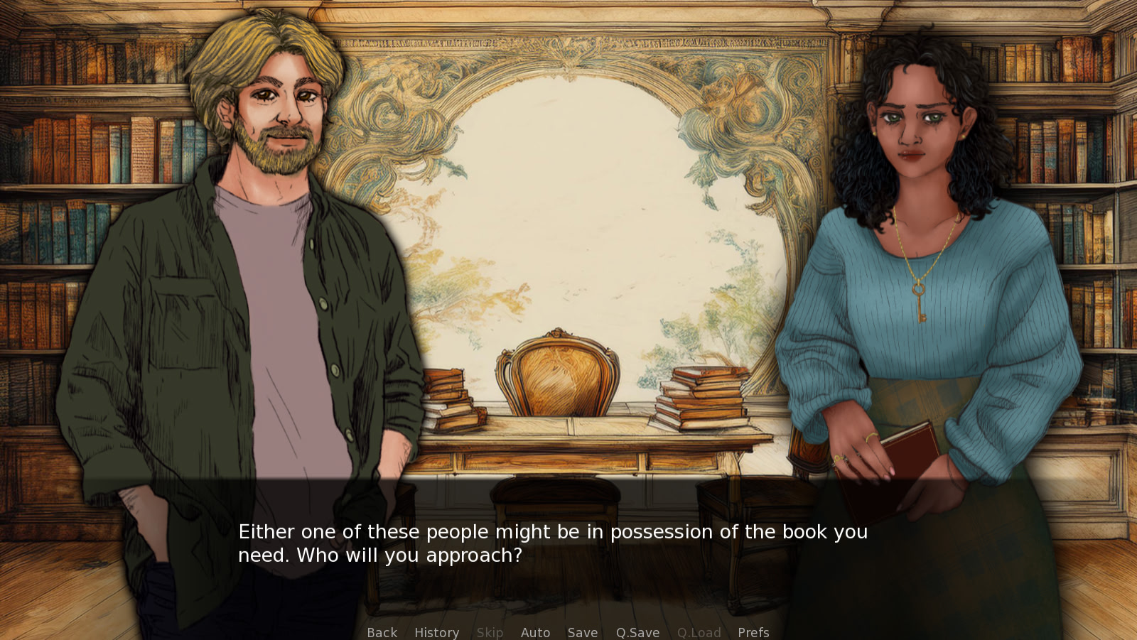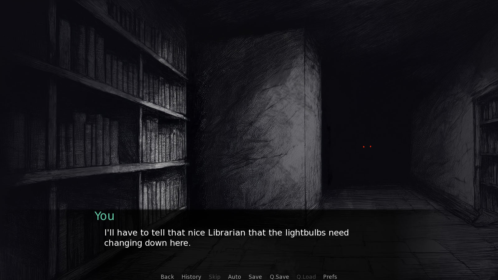 A choose-your-own adventure style game set in the aisles of your local library, where the player must track down the required reading for their monthly book club. As they explore the library, fiction begins to distort the world around them into reflections of the books they seek. Choose between th...