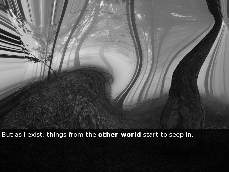 In a broken world, someone wanders trying to do nothing more than avoid things from the other world.