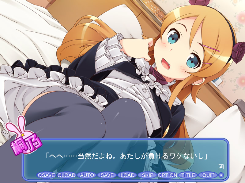 Become Kirino's boyfriend in this ecchi love sim parody work from doujin soft circle Grand Cross! With art that's so close to the anime you'd think it was straight from it, enjoy animated "H" scenes with Kirino and the other Oreimo girls as you play through the super sexy scenario that includes cosplay sex, outdoor sex, footplay, school uniform sex, and much more.