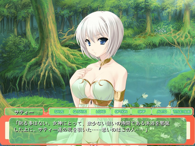One day you spied upon five goddesses bathing. However, rules dictate that any human who learns the lineage of a goddess must either be erased from existence, or make a lovechild with her.