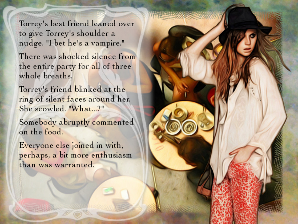 When Torrey's best friend insists that the gorgeous guy living in the upscale mansion is a Vampire, she simply had to go see for herself.