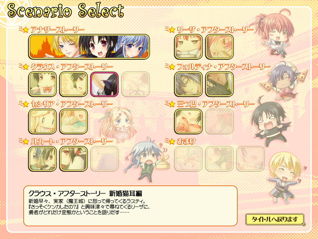 This is the fandisc to Sekai o Seifuku Suru Tame no, 3tsu no Houhou. The premise is based on a hero, a demon and a gender-changing potion. Hau~ Omochikaeri!]