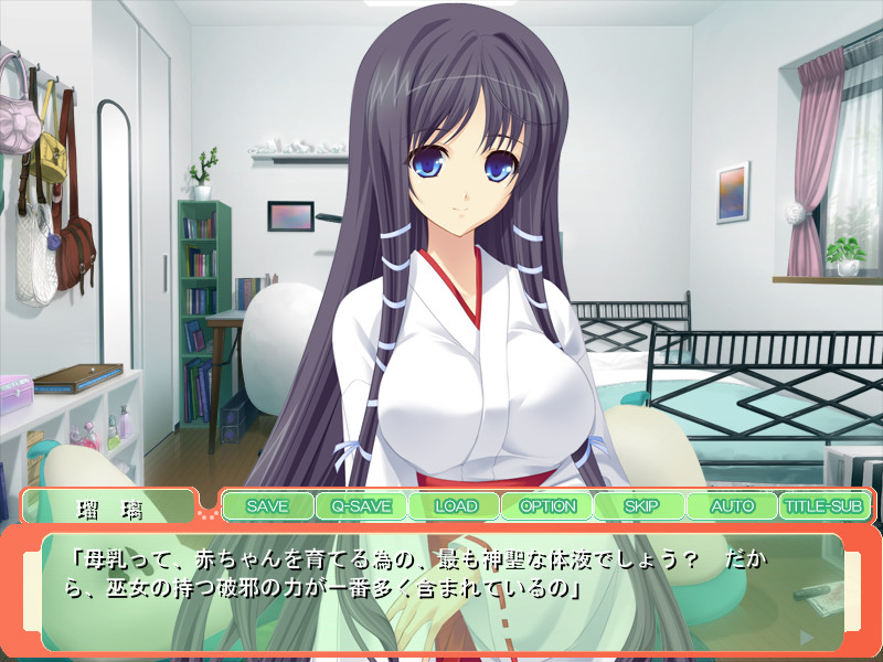 The lead character has a childhood friend who has become a shrine maiden. One day, he is put to the test to marry her and receives a curse of death. It turns out that only her milk has the power to cancel it. And this is how his love life with her, healed by her breasts and milk. English DLSite]