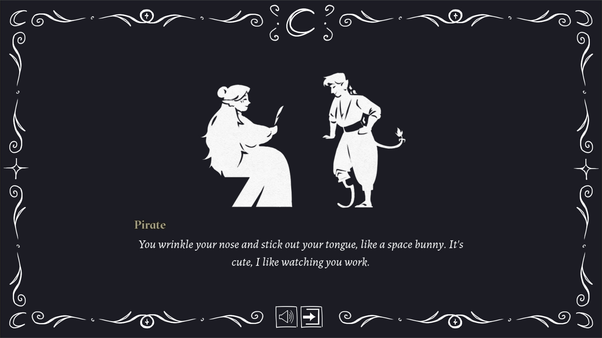 A princess is trapped in the dark side of the Moon when a space pirate crashes in. Both mesmerized, they decide to become pen pals. Follow them to see how their romance develops. Will they be able to get together? itch.io]