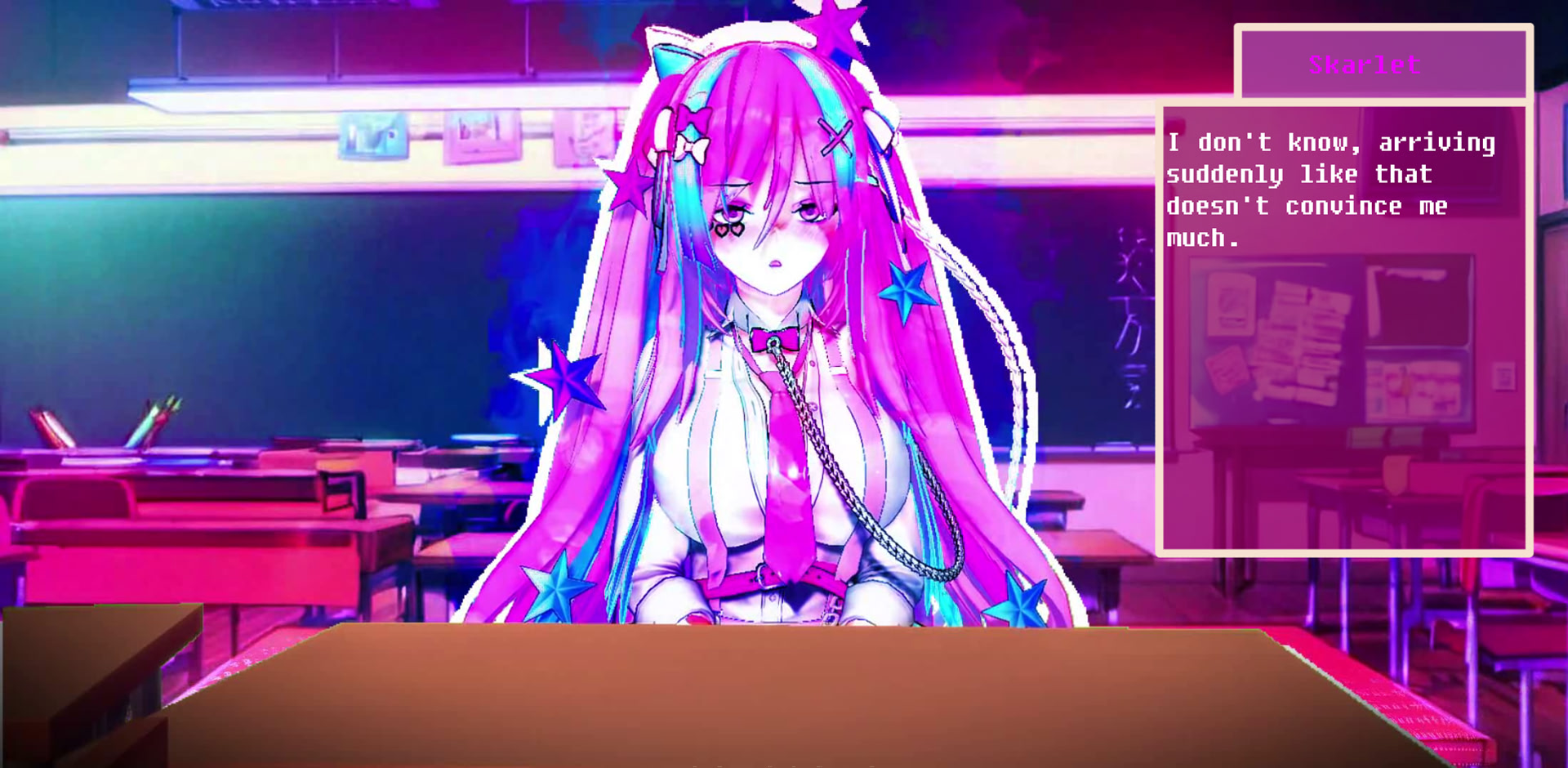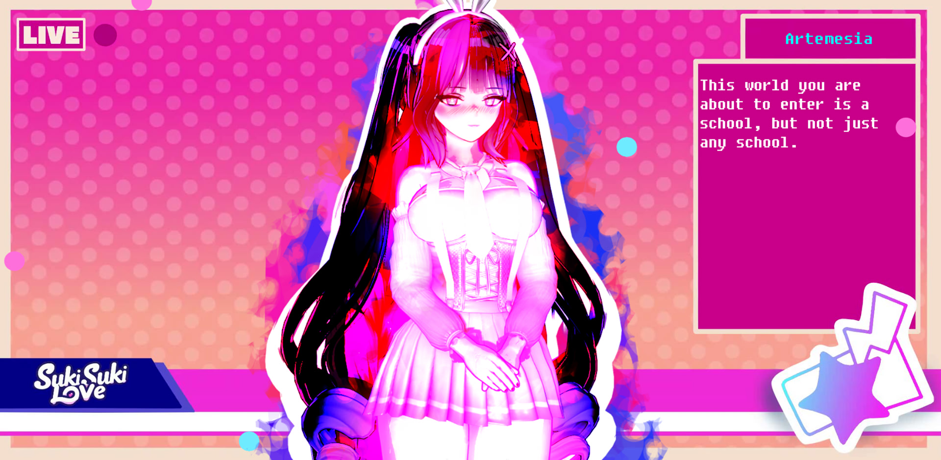 Welcome! I'm Artemesia, your charming host in this reality show set in an academy that hides more than meets the eye. Every decision could lead you to redemption... or damnation. Do you dare to unravel its mysteries and face your own? Steam]