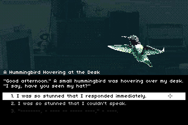 Hummingbird Mind is a short visual novel / interactive story about distraction, daydreaming, and working from home.