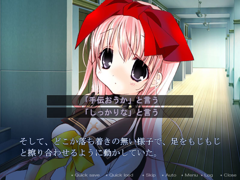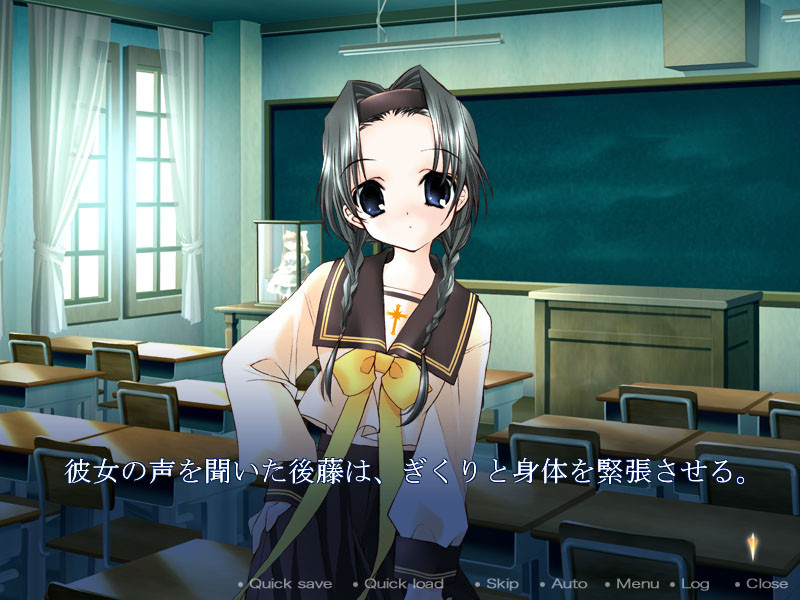 Doing as instructed, Subaru enters a dark classroom. Inside awaits him a single girl - his classmate, Oda Honoka.