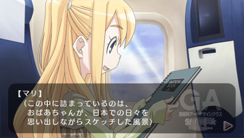 Inside an airplane heading for Japan, Mari is clutching a sketchbook which once belonged to her grandma, who is now deceased. The sketches on it are what her grandma had drawn before she died, reminiscing about the days spent in Japan. To color the sketches: a promise Mari made with her grandma. Wha...