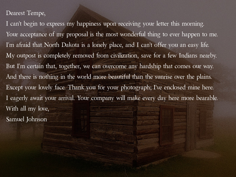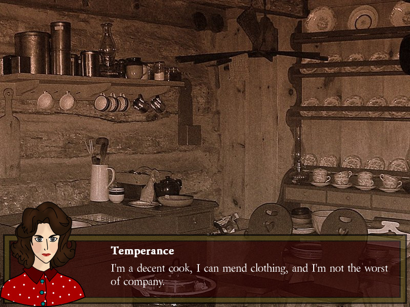 "Mail Order Bride" is a short GxB story set in the American West during the 1860s. You play the titular character, Temperance Adams, a young Bostonian schoolteacher who has decided to move West and marry a man she has never met, but only spoken with through postal communication. However, when she arrives, she discovers she has to deal with a set of totally unforeseen circumstances...what will she do?