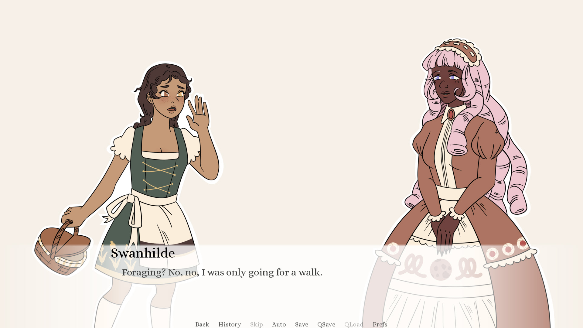 You play as Michaela, a kind and overly optimistic young woman. When she meets Swanhilde, a beautiful and mysterious baker woman, she's instantly smitten. Explore Swanhilde's cabin and help her prepare a grand feast. If you're lucky, you may even woo her in time for dinner.